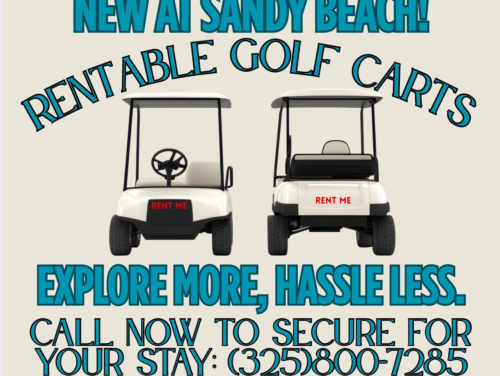 Now you can rent a golf cart—perfect for getting to and from campsites that are a bit farther from amenities, or simply cruising around the park for some added family fun! Perfect to join our annual Golf Cart Parades.
